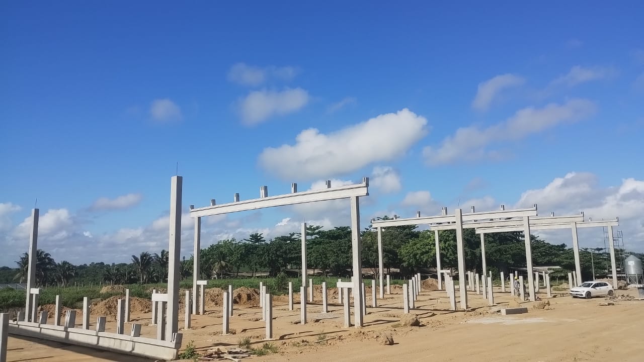 Galpão de avicultura destinado à criação de aves, com projeto e execução desenvolvidos pela Walter Lopes Pré-fabricados, contando com solução de piso elevado que facilita a higienização e possibilita o reuso.